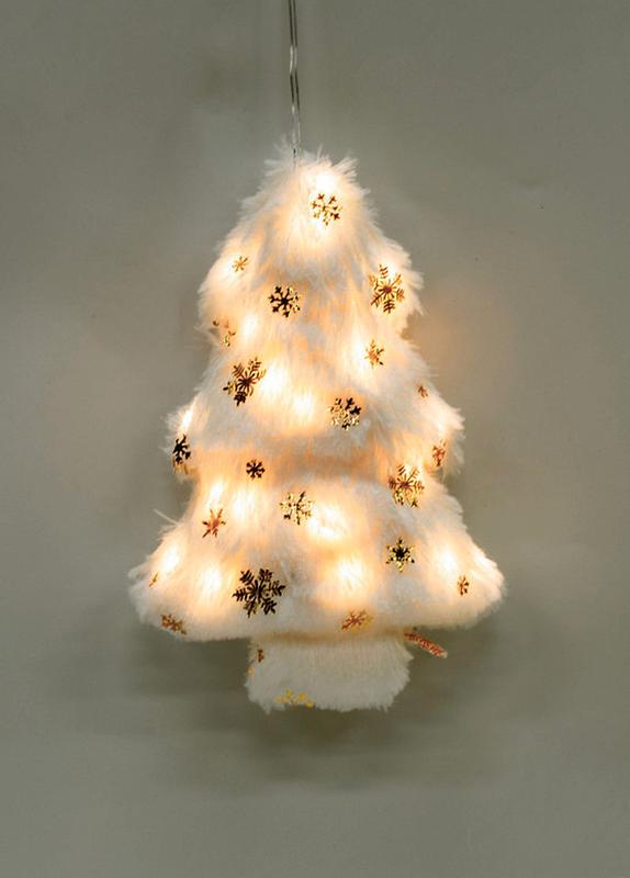 Подвесной светильник KOC_TAB-B108. Интерьерное украшение 2 в 1 - Красивый новогодний декор в выключеном состоянии и мини-светильник во включенном. Необыкновенное подвесное новогоднее украшение размером: 12х19см в виде елочки, мягкой на ощупь и легкой как облочко. с 10 светодиодами, работает от батареек, т.е. можно прикрепить практически в любое место. Универсальная и безопасная. Световые лампочки (диоды) экономичны, елочка прослужит долгое время! Провод прозрачный. 2 батарейки CR2032 в комплекте.