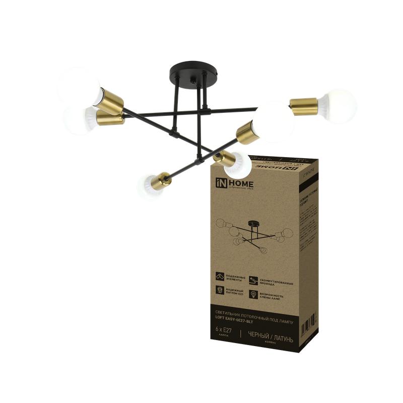 Светильник LOFT EASY-6E27-BLT 6хE27 потолочн. под лампу; латунь черн. IN HOME 4690612062655 - УПС инжиниринг