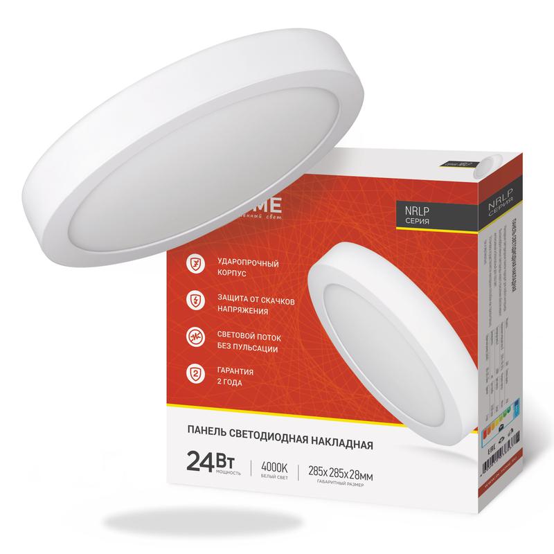Светильник светодиодный NRLP 24Вт 4000К IP40 1680лм 230В 285мм круглый накладной панель бел. IN HOME 4690612038537