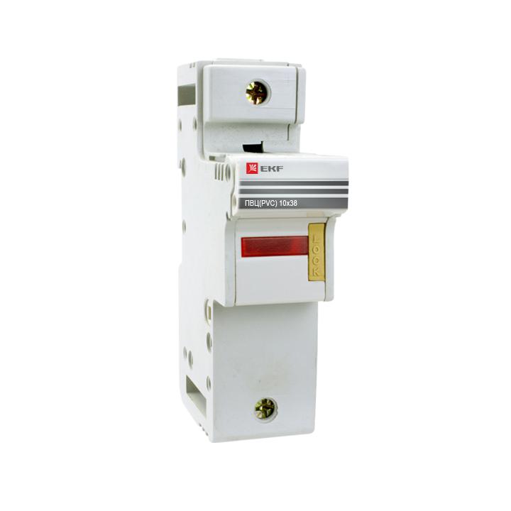 Главная/ Каталог продукции / Устройства защиты, плавкие предохранители, модульные устройства/монтажные устройства / Держатель для цилиндрических предохранителей / Предохранитель-разъединитель для ПВЦ 10х38 1п EKF pr-10-38-1