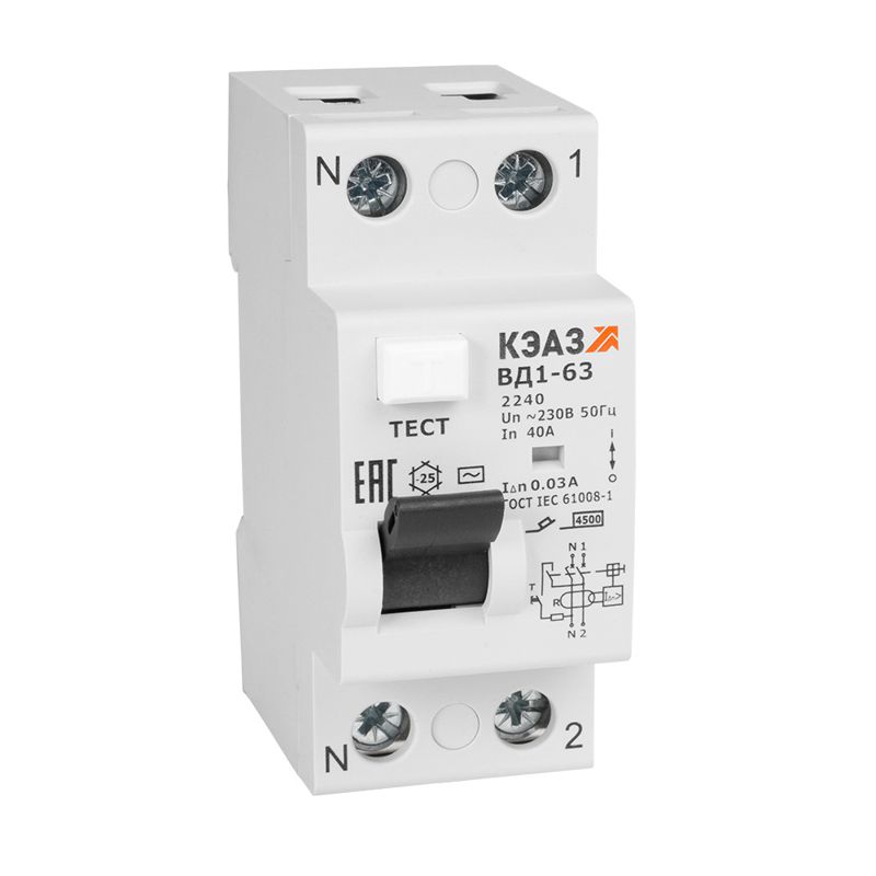 Выключатель дифференциального тока (УЗО) 2п 63А 30мА тип AC ВД1-63 2263 УХЛ4 КЭАЗ 221907