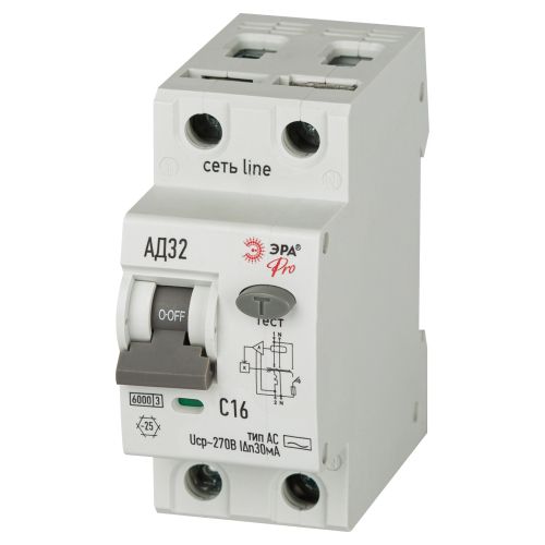Автоматический выключатель дифференциального тока ЭРА АД-32 линейки Pro. АВДТ электронного типа. Профессиональные АВДТ ЭРА защищают человека от поражения электрическим током при повреждении изоляции электроустановок, предотвращают пожары вследствие токов утечки на землю, предохраняют от перегрузки и короткого замыкания. Рекомендуются для защиты групповых линий, питающих розетки наружной установки, розеток и освещения подвалов и гаражей. Современное решение для квартирных щитков и промышленного применения.