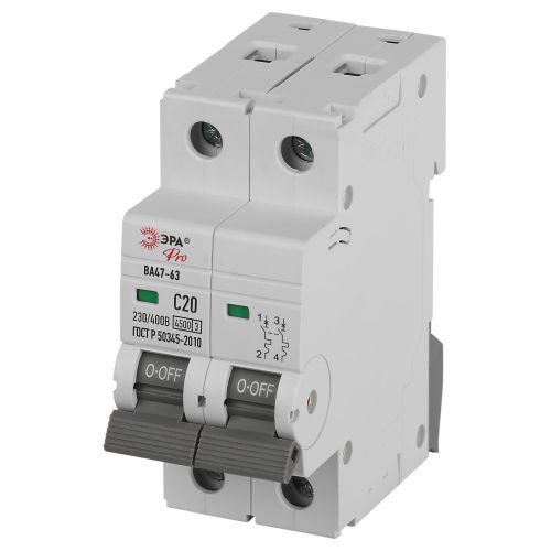 Главная/ Каталог продукции / Устройства защиты, плавкие предохранители, модульные устройства/монтажные устройства / Выключатель автоматический модульный / Выключатель автоматический 2п C 20А 4.5кА ВА47-63 PRO ЭРА Б0059423