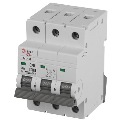 Главная/ Каталог продукции / Устройства защиты, плавкие предохранители, модульные устройства/монтажные устройства / Выключатель автоматический модульный / Выключатель автоматический 3п C 20А 4.5кА ВА47-63 PRO ЭРА Б0059438