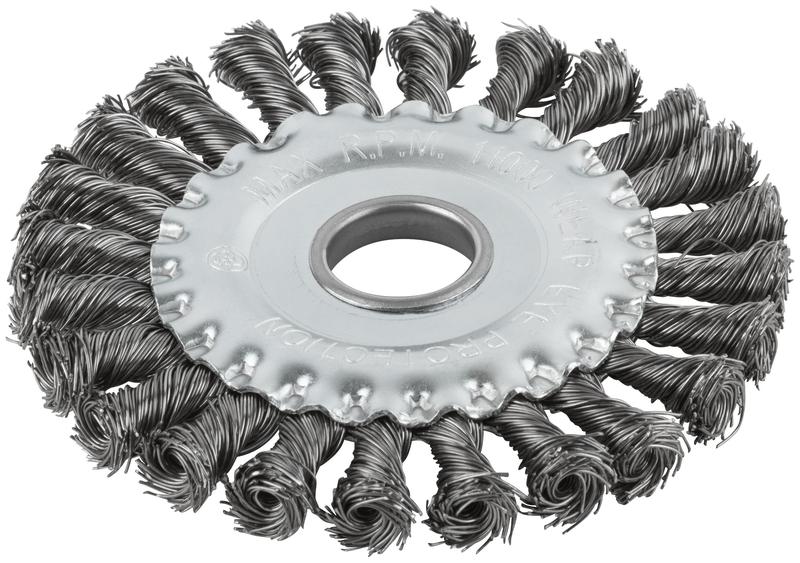 Корщетка-насадка для УШМ дисковая прямая КУРС тип «колесо» предназначена для грубой обработки дерева и металла, зачистки сварных швов, снятия краски и ржавчины. Стальная витая проволока обеспечивает высокую скорость и эффективность работы. Наиболее эффективна при обработке стыков, углов, пазов и различных труднодоступных мест.