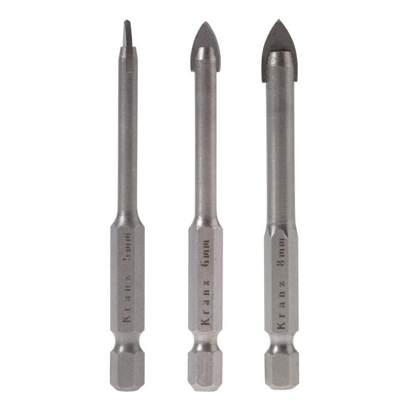 Набор сверл по керамической плитке 5-6-8мм шестигранный хвостовик Kranz KR-91-0655
