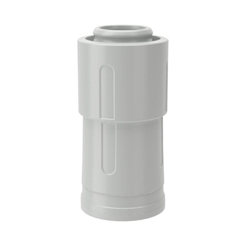 Переходник "Армированная труба - жесткая труба" для герметичного соединения жестких гладких и армированных труб. Диаметр - 16 мм. Материал: полипропилен/ резина. Степень пыле- и влагозащиты IP67. Цвет серый RAL 7035. Элемент системы может эксплуатироваться при широком диапазоне температур: от –25°С до +60 °С.