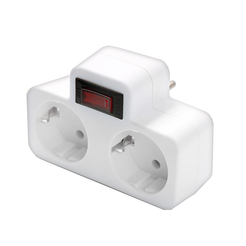 Главная/ Каталог продукции / Электроустановочные изделия / Блок розеток, удлинитель / Разветвитель 2-м плоский с выключателем с заземл. 16А 3500Вт 250В бел. DОМТОК 2664