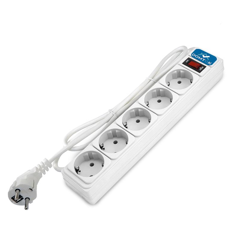 Удлинитель с сетевым фильтром 5х1.8м с заземл 10А IP20 2.2кВт ПВС 3х1 с выкл. бел. DOMTOK 2527