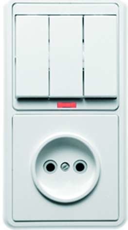 Главная/ Каталог продукции / Электроустановочные изделия / Блок "Выключатель-розетка" / Блок БКВР-212 Бэлла (3-кл. выкл. с инд. + розетка) бел. Кунцево 5841