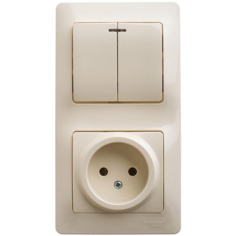Блок комбинированный Glossa (розетка + 2-кл. выкл. с подсветкой) беж. SE GSL000273