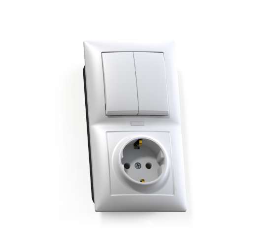Главная/ Каталог продукции / Электроустановочные изделия / Блок "Выключатель-розетка" / Блок СП БКВР-421 Селена (2-кл. выкл. и индик.+ розетка с заземл.) бел. Кунцево 8217