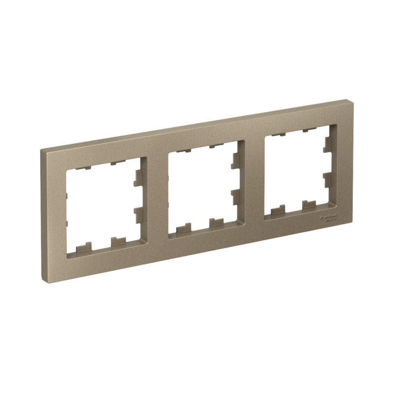 Рамка Systeme Electric (ранее Schneider Electric) серии AtlasDesign в цвете шампань трёхместная. Устанавливается в вертикальном и горизонтальном положениях. Лицевые детали из качественного ABS-пластика, устойчивого к царапинам и УФ-излучению. Позволяет гармонично вписать электроустановочное изделие в интерьер помещения.