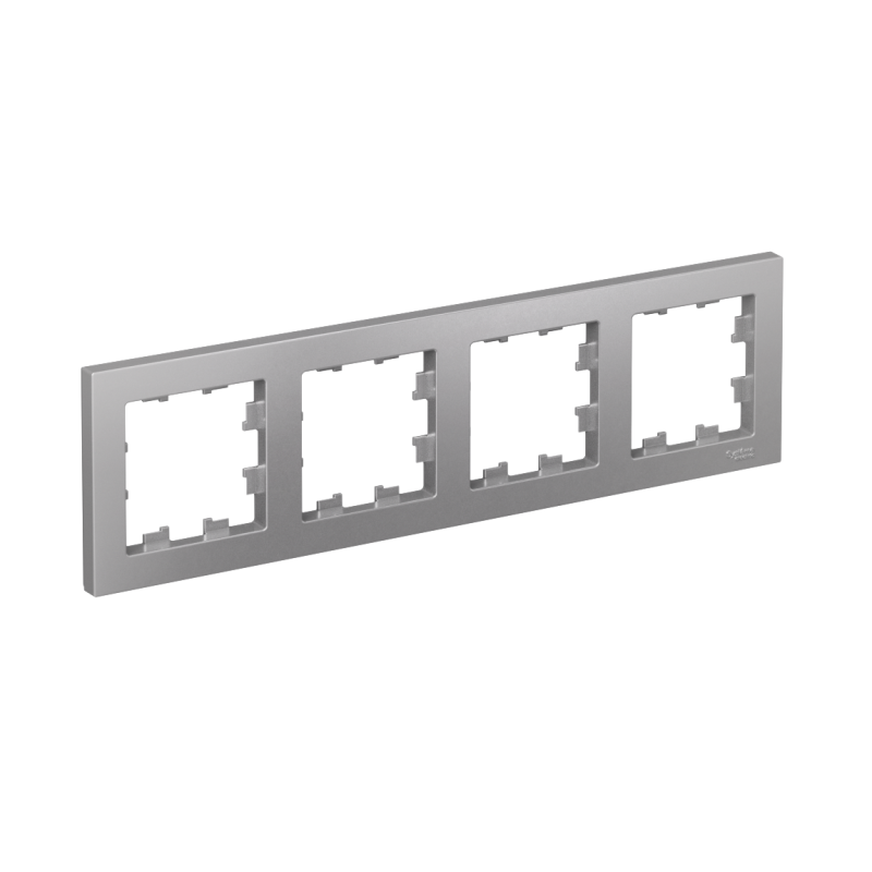 Рамка Systeme Electric (ранее Schneider Electric) серии AtlasDesign в цвете алюминий четырёхместная. Устанавливается в вертикальном и горизонтальном положениях. Лицевые детали из качественного ABS-пластика, устойчивого к царапинам и УФ-излучению. Позволяет гармонично вписать электроустановочное изделие в интерьер помещения.