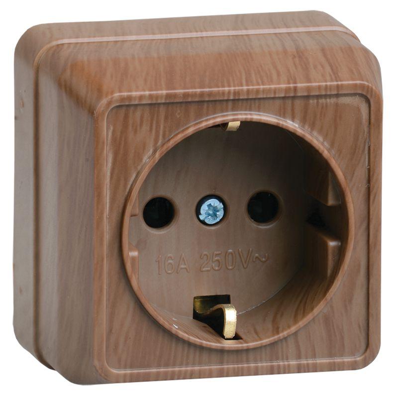 Розетка 1-м ОП Октава РС20-3-ОД 16А IP20 с заземл. дуб GENERICA ERO11-K04-16-DC