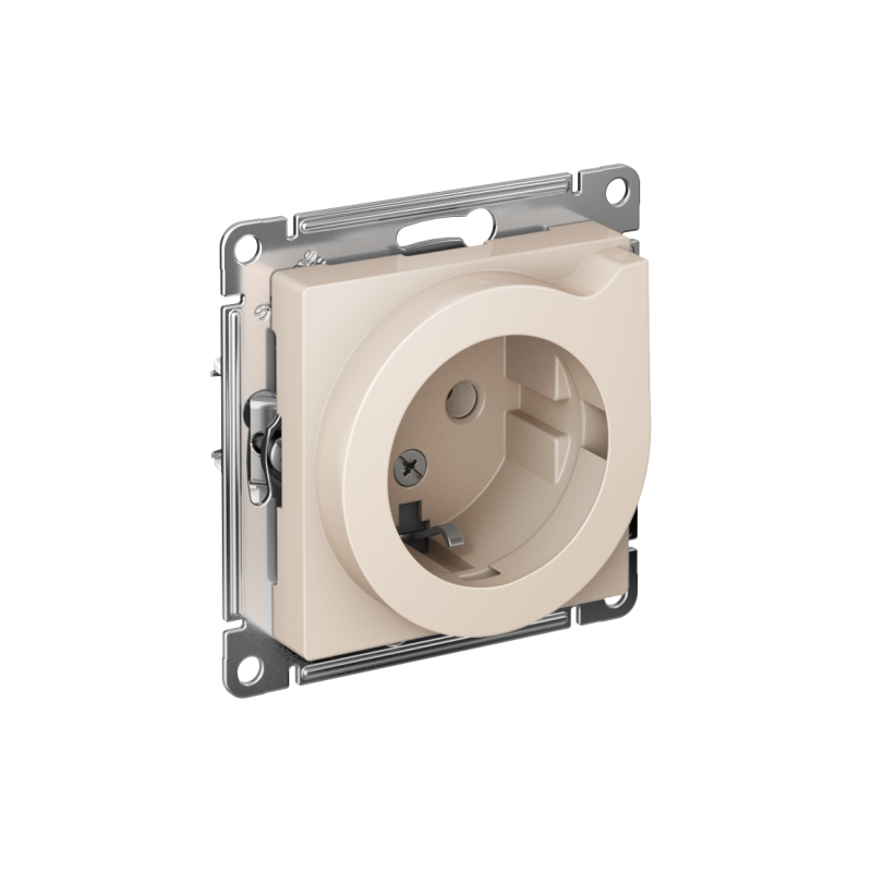 Механизм Systeme Electric (ранее Schneider Electric) серии AtlasDesign в цвете бежевый розетки одинарной с заземлением, шторками с выталкивателем подходит для сетей 250 В, на ток 16 А. Заземляющий контакт обеспечивает дополнительную защиту от удара электрическим током. Оснащена специальным механизмом: рычаг при повороте выталкивает вилку из розетки, что особенно удобно при частом подключении к розетке массивных вилок от бытовых приборов.