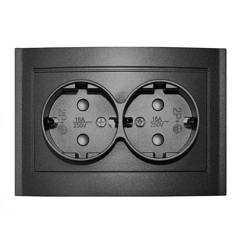 Розетка 2-м СП Бриллиант 16А IP20 с заземл. защ. шторки в сборе графит Universal 7947540-Gr