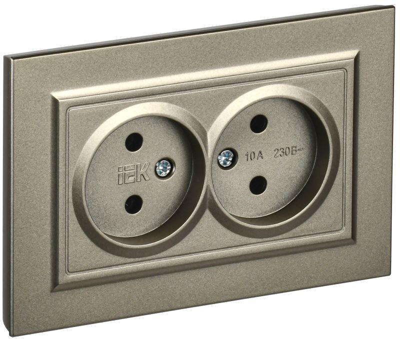 Розетка 2-м СП BRITE РС12-2-БрШ 10А в сборе без заземл. без защ. шторок шампань IEK BR-R20-10-K37-F