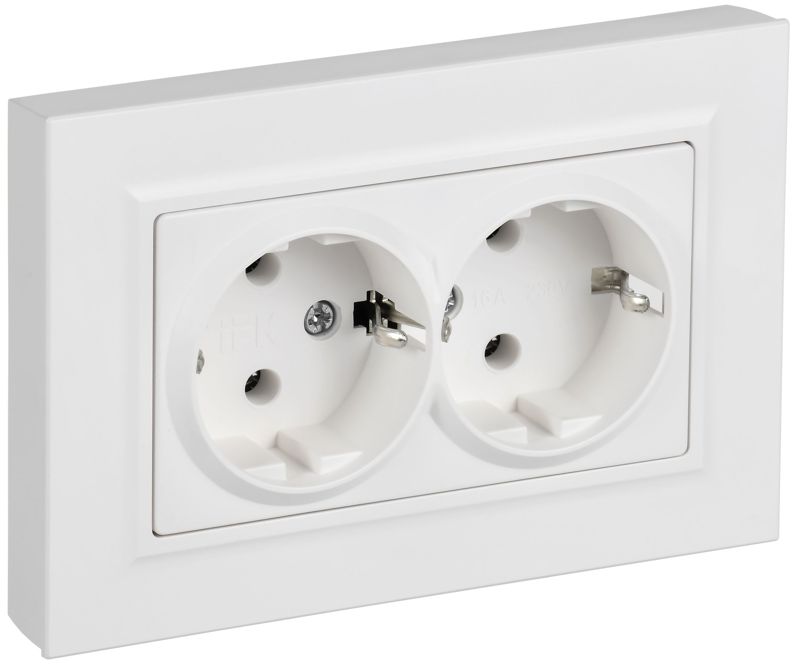 Розетка 2-м СП BRITE РСПл12-3-БрАБ 16А в сборе с заземл. без защ. шторок плоская арктич. бел. IEK BR-R27-16-K91-F