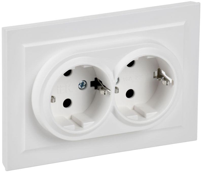 Главная/ Каталог продукции / Электроустановочные изделия / Розетка штепсельная / Розетка 2-м СП BRITE РСш12-3-БрАБ 16А в сборе с заземл. защ. шторки арктич. бел. IEK BR-R24-16-K91-F