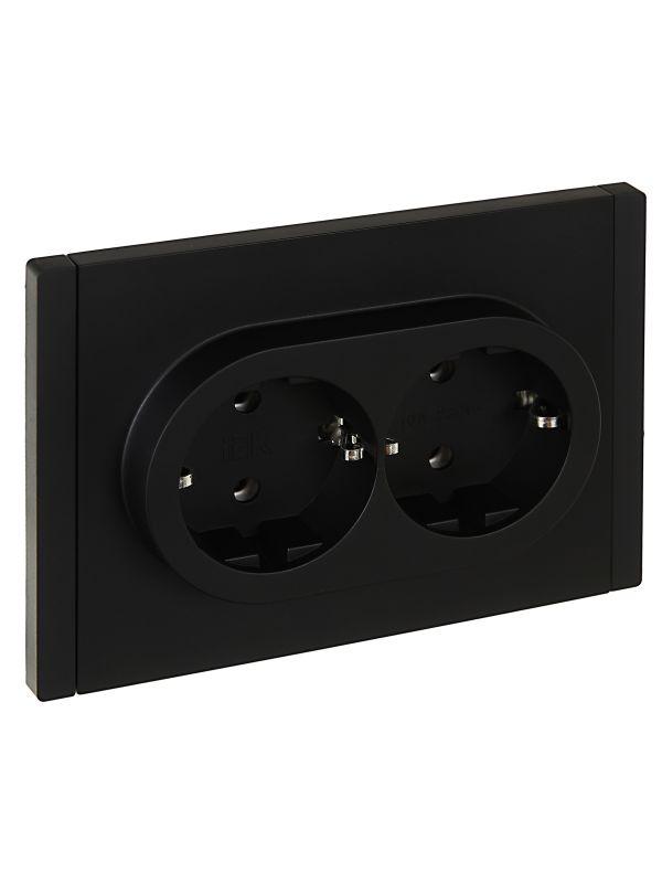 Розетка 2-м СП FORTE&PIANO FP124 16А с заземл. без защ. шторок безвинт. крепл. черн. IEK FP-R21-16-1-K02