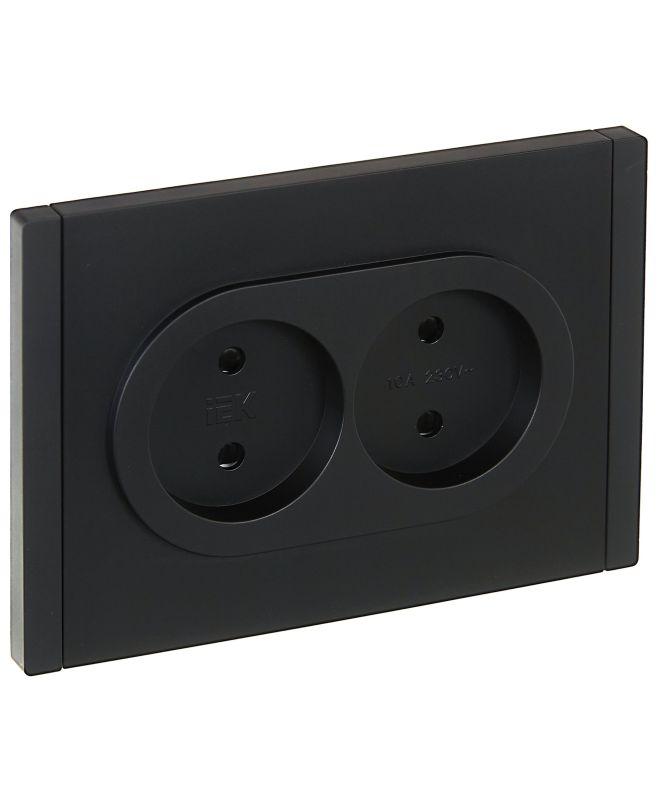 Розетка 2-м СП FORTE&PIANO FP125 10А без заземл. защ. шторки безвинт. крепл. черн. IEK FP-R23-10-1-K02