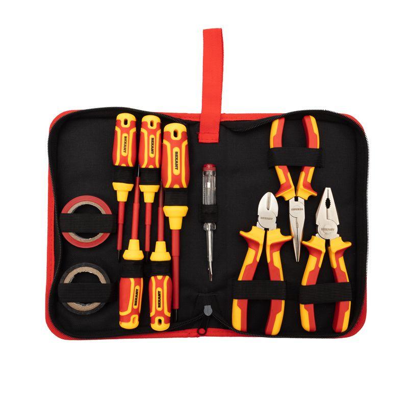 Главная/ Каталог продукции / Инструмент ручной / Набор инструментов / Набор диэлектрического инструмента RI-02 11 предметов до 1000В тканевый пенал Rexant 12-4692-3