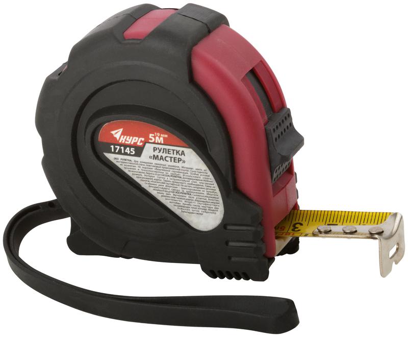 Главная/ Каталог продукции / Инструмент ручной / Рулетка / Рулетка Мастер 5мх19мм прорезиненный корпус КУРС 17145
