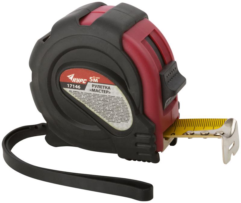 Главная/ Каталог продукции / Инструмент ручной / Рулетка / Рулетка Мастер 5мх25мм прорезиненный корпус КУРС 17146
