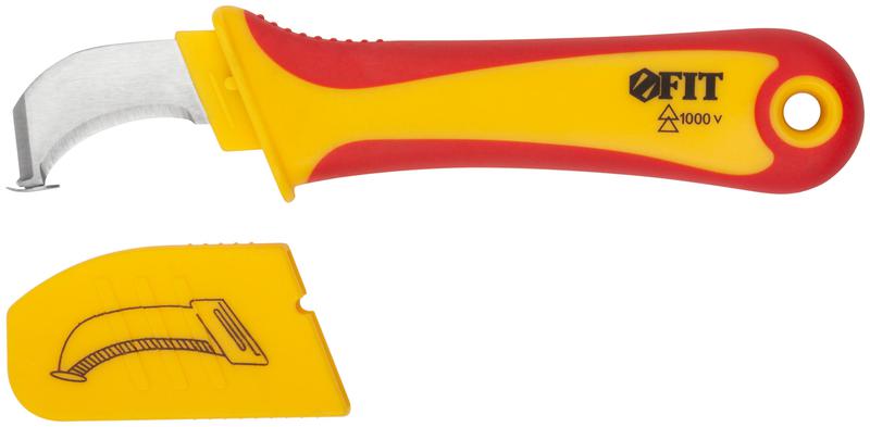 Нож для электромонтажных работ FIT IT с пяткой предназначен для снятия изоляции при напряжении до 1000 В. Пятка позволяет аккуратно снять изоляцию, не повредив при этом провод, что особенно важно для начинающих мастеров без опыта разделки кабелей. Диэлектрический нож с пяткой используется при работе с плоскими кабелями. Лезвие изготовлено из нержавеющей стали, рукоятка — пластиковая, прорезиненная. Пятка надежно и ровно приварена к лезвию. В комплекте поставляется защитный колпачок.