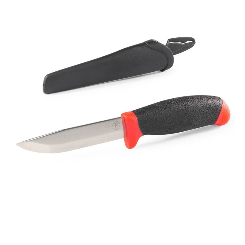 • Конструкция: с фиксированным лезвием • Материал лезвия: нержавеющая сталь • Толщина обуха: 2,5 мм • Длина лезвия: 95 мм • Форма клинка: Clip-Point • Рукоятка двухкомпонентная удобной формы с покрытием из резины • Пластиковые ножны/чехол обеспечивают безопасное хранение и позволяют размещать нож на ремне • Вес: 89 г • Длина: 220 мм