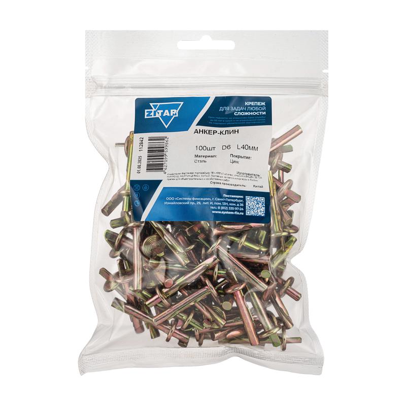 Анкер клиновой М6х40 (пакет) (уп.100шт) Zitar 112842