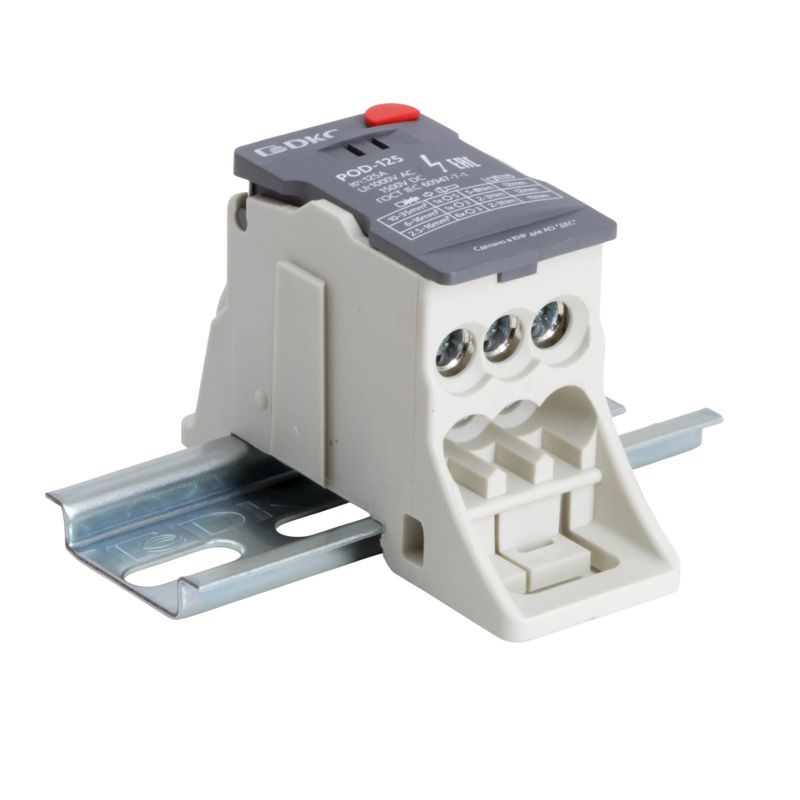 Главная/ Каталог продукции / Колодки клеммные / Проходная клеммная колодка / Блок распределительный винтовой зажим 1х35кв.мм 7х16кв.мм DKC POD-125