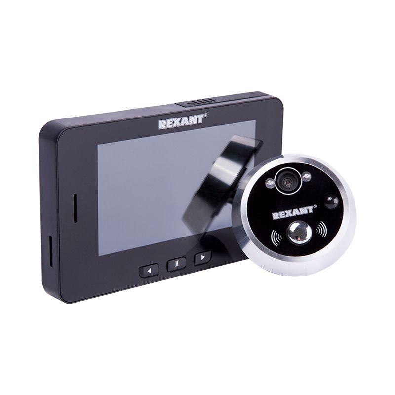 Видеоглазок (запись видео/фото по движ. ночн. реж. работы) 4.3дюйм TFT QVGA монитор; Micro SD до 32Гб; ИК-автомат; наружн. камера-1.3Мп. 100град. цифр. зум. 5Х REXANT 45-0249