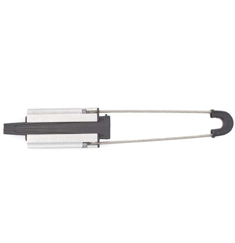 • НАЗНАЧЕНИЕ Зажимы анкерные клиновые применяются для крепления провода СИП на угловых, промежуточных и концевых опорах линий электропередачи. • ОБЛАСТЬ ПРИМЕНЕНИЯ Функцией зажима анкерного клинового является обеспечение натяжения самонесущего изолированного проводника на анкерных опорах. Зажимы используются под различное сечение проводника и в разных исполнениях имеют различное значение предельной нагрузки. • ПРИНЦИП ДЕЙСТВИЯ Зажим анкерный клиновой обеспечивает фиксацию проводника путем срабатывания простого призматического механизма, рабочие поверхности которого сходятся под острым углом. На опоре ЛЭП зажим фиксируется с помощью тросика. • ДОПОЛНИТЕЛЬНЫЕ ПРИНАДЛЕЖНОСТИ ИЛИ АКСЕССУАРЫ В стандартную комплектацию входит основное устройство.