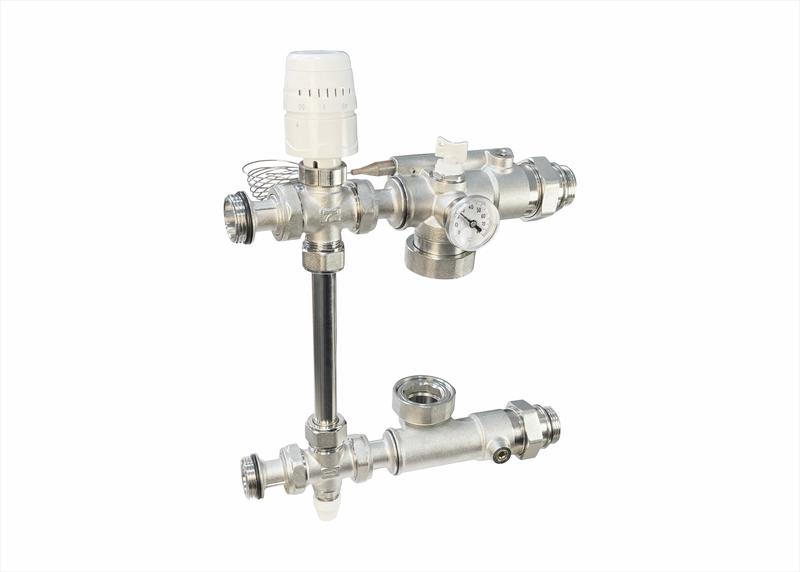 Главная/ Каталог продукции / Муфты, фитинги сантехнические / Акссесуары для сантехнических изделий / Насос-смесительный узел с термоголовкой. без насоса. монтажная длина насоса 130мм (1) К VALFEX VF.152.0.130