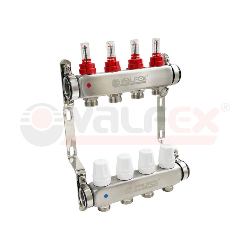 Блок коллекторов 1дюйм х 3 вых. евроконус 3/4дюйм с расходомером нерж. сталь (2) К VALFEX VF.584.0603