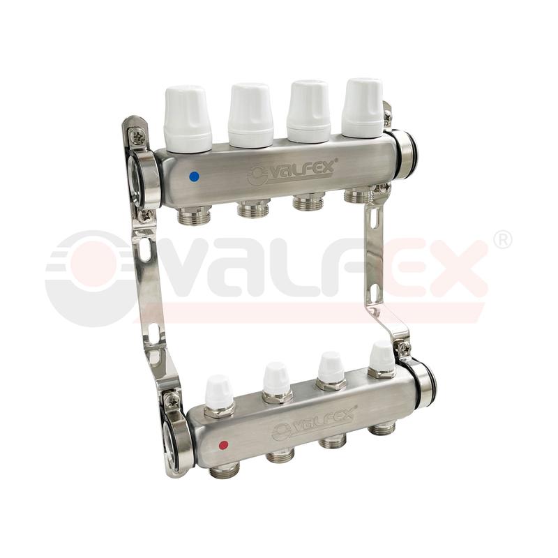 Блок коллекторов 1дюйм х 8 вых. евроконус 3/4дюйм с ручн. регулир. клапан. нерж. сталь (2) К VALFEX VF.582.0608