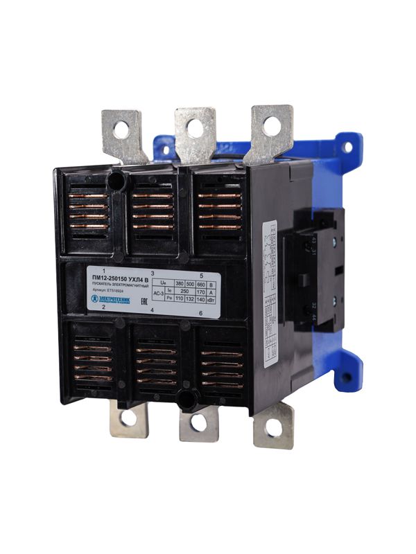 Пускатели электромагнитные серии ПМ12 предназначены для дистанционного пуска непосредственным подключением к сети, остановки и реверсирования трёхфазных асинхронных электродвигателей с короткозамкнутым ротором на напряжение до 660 В переменного тока 50 и 60 Гц. При наличии тепловых реле пускатель осуществляет защиту управляемых электродвигателей от: * перегрузки; * токов, возникающих при обрыве одной из фаз; * асимметрии фаз. *Пускатели ПМ12 100-250 - IP00, IP20* * Пускатели отличаются высокой механической и коммутационной износостойкостью, что обеспечивает длительный срок службы даже в условиях интенсивной эксплуатации; * Соответствует требованиям ГОСТ, предъявляемым к аппаратам промышленного назначения, обеспечивает высокую надёжность срабатывания; * Отсутствие шумов и повышенная надёжность работы; * Простота конструкции и высокая надёжность, испытанная временем эксплуатации. *Пускатели ПМ12 100-250 в корпусе – IP40, IP54* * Простота конструкции, высокая надёжность, испытанная временем эксплуатации; * Соответствует требованиям ГОСТ, предъявляемым к аппаратам промышленного назначения, обеспечивает высокую надёжность срабатывания; * Высокая нагрузочная способность коммутации в общепромышленных режимах АС-3; * Больший коммутационный ресурс износостойкости. * Наличие защитного корпуса обеспечивает высокую степень защиты IP40, IP54.