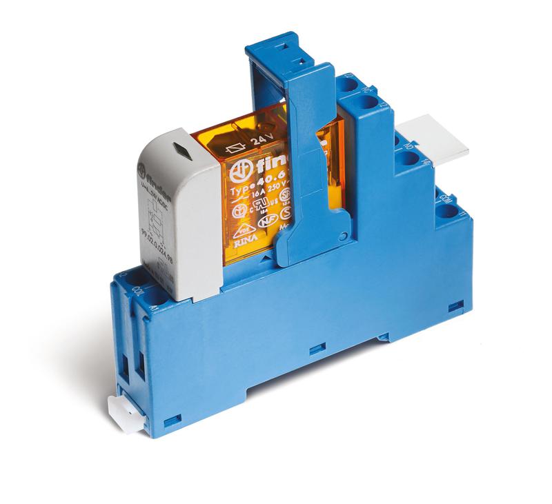Модуль интерфейсный (сборка 40.61.7.024.0000 + 99.02.9.024.99 + 95.05SPA) электромеханич. реле 1CO 16А AgCdO 24В DC (чувствит.) IP20 винт. клеммы пластик. клипса LED + диод FINDER 486170240050SPA