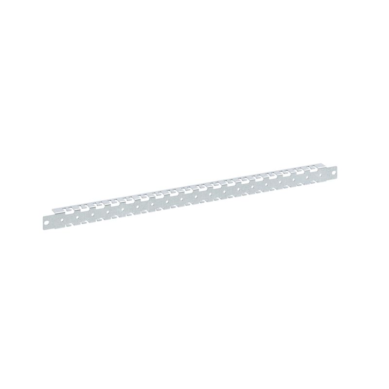 Рейка предназначена для монтажа оборудования и боковых монтажных плат, а также для организации прокладки кабеля. Рейку можно монтировать по высоте на боковые стенки (размер рейки должен быть равен половине высоты корпуса) и по ширине на монтажную раму и заднюю панель (монтаж на раму осуществляется с помощью кронштейнов R6BRTU). Специальные отверстия позволяют фиксировать кабель с помощью хомутов. Шаг перфорации составляет 25 мм, а максимальная статическая нагрузка на одну рейку достигает до 10 кг. Изготовлена из оцинкованной стали толщиной 1,5 мм. Ширина 700 мм.