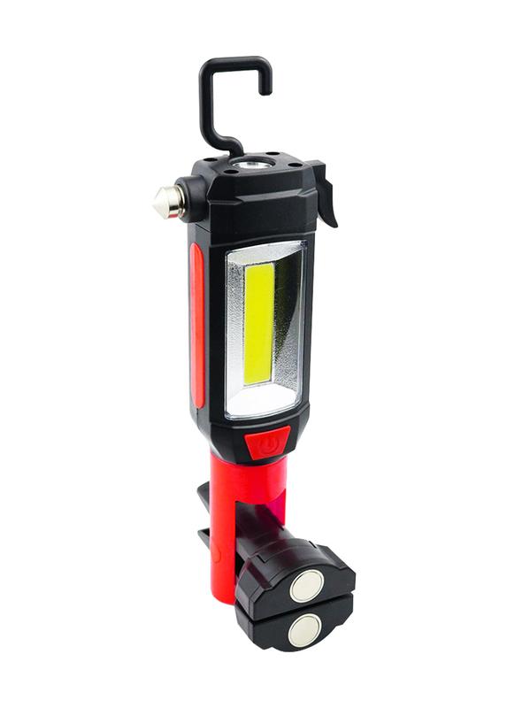 Фонарь-светильник 2-в-1 с дополнительным лучом. 7 дополнительных функций для автомобилистов – аварийный молоток, нож для ремней, складной крючок и магнит для крепления к металлу, струбцина с регулировкой угла наклона. Совмещает широкий свет (освещает широкое пространство с одной стороны, удобен для работы вблизи) и луч фонаря (светит как фара автомобиля, направленный свет с ярким пятном засветки в центре) и. Площадь освещения светильника - 36 кв.м, время беспрерывной работы – до 7 ч. Длина луча – 46 м, время беспрерывной работы – до 10 ч. Работает от 3 батареек ААА. Упакован в коробку с подробной информацией о модели и схемой фонаря.