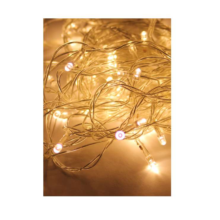 Главная/ Каталог продукции / Светильники / Освещение иллюминационное / Гирлянда светодиодная 100LED бел. прозр. провод 10.8м 8 режимов мигания IP20 тепл. бел. Космос KOC_GIR100LED_W
