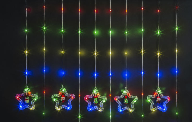Главная/ Каталог продукции / Светильники / Освещение иллюминационное / Гирлянда светодиодная "Бахрома" "Звезды и фигурки" 95 014 NGF-D035-03 3х0.6м RGBY IP20 NAVIGATOR 95014