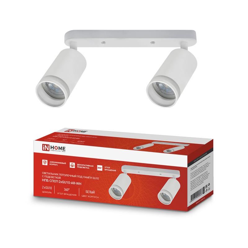 Светильник НПБ СПОТ-2xGU10-AR-WH 55х165х260мм потолочн. под лампу GU10 бел. IN HOME 4690612045603