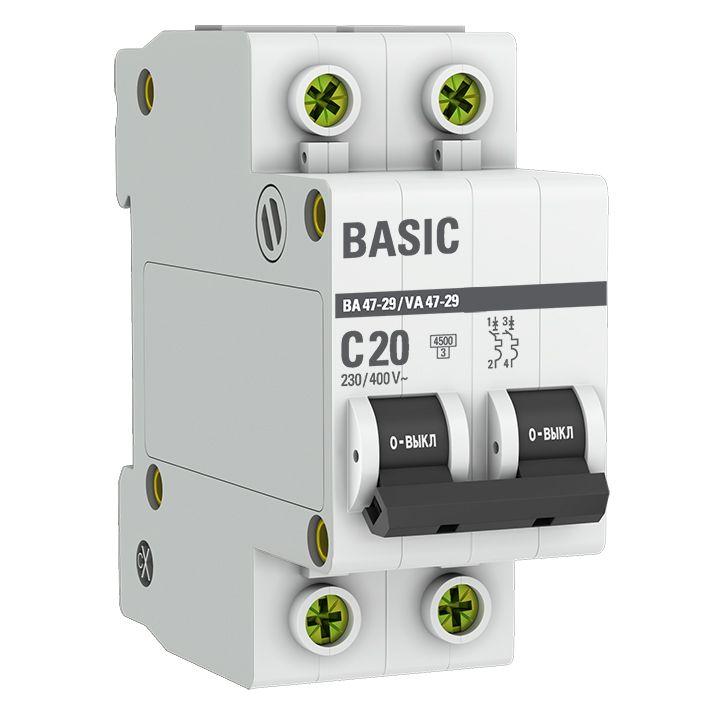 Выключатель автоматический модульный 2п C 20А 4.5кА ВА 47-29 Basic EKF mcb4729-2-20C