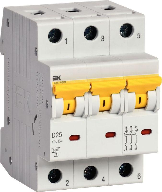Выключатель автоматический модульный 3п D 25А 6кА ВА47-60МА без тепл. расцеп. KARAT IEK MVA33-3-025-D
