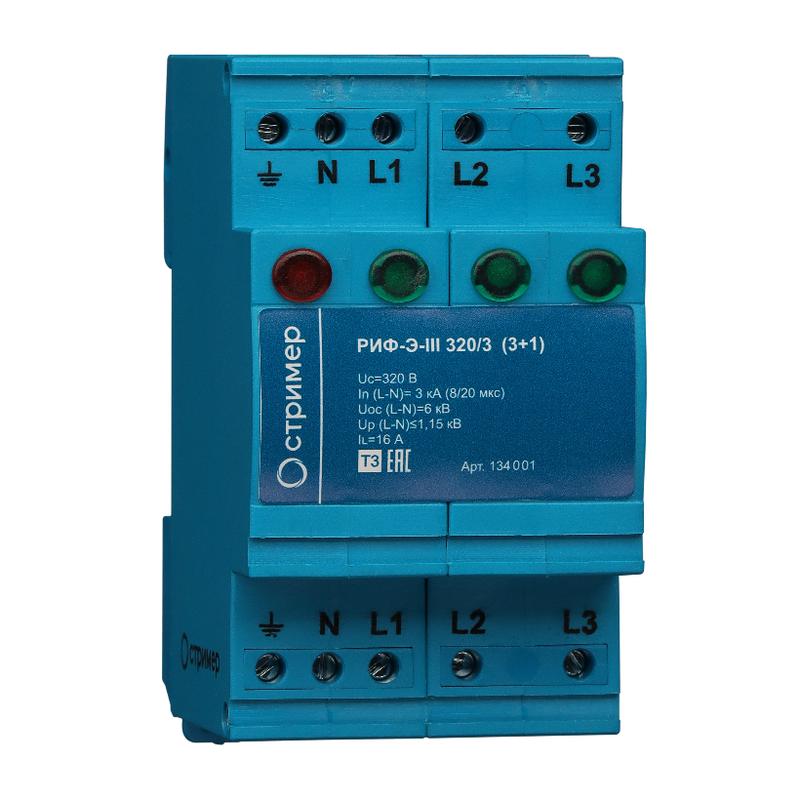 Устройство защиты от импульсных перенапряжений РИФ-Э-III 320/3 (3+1) Стример 134001